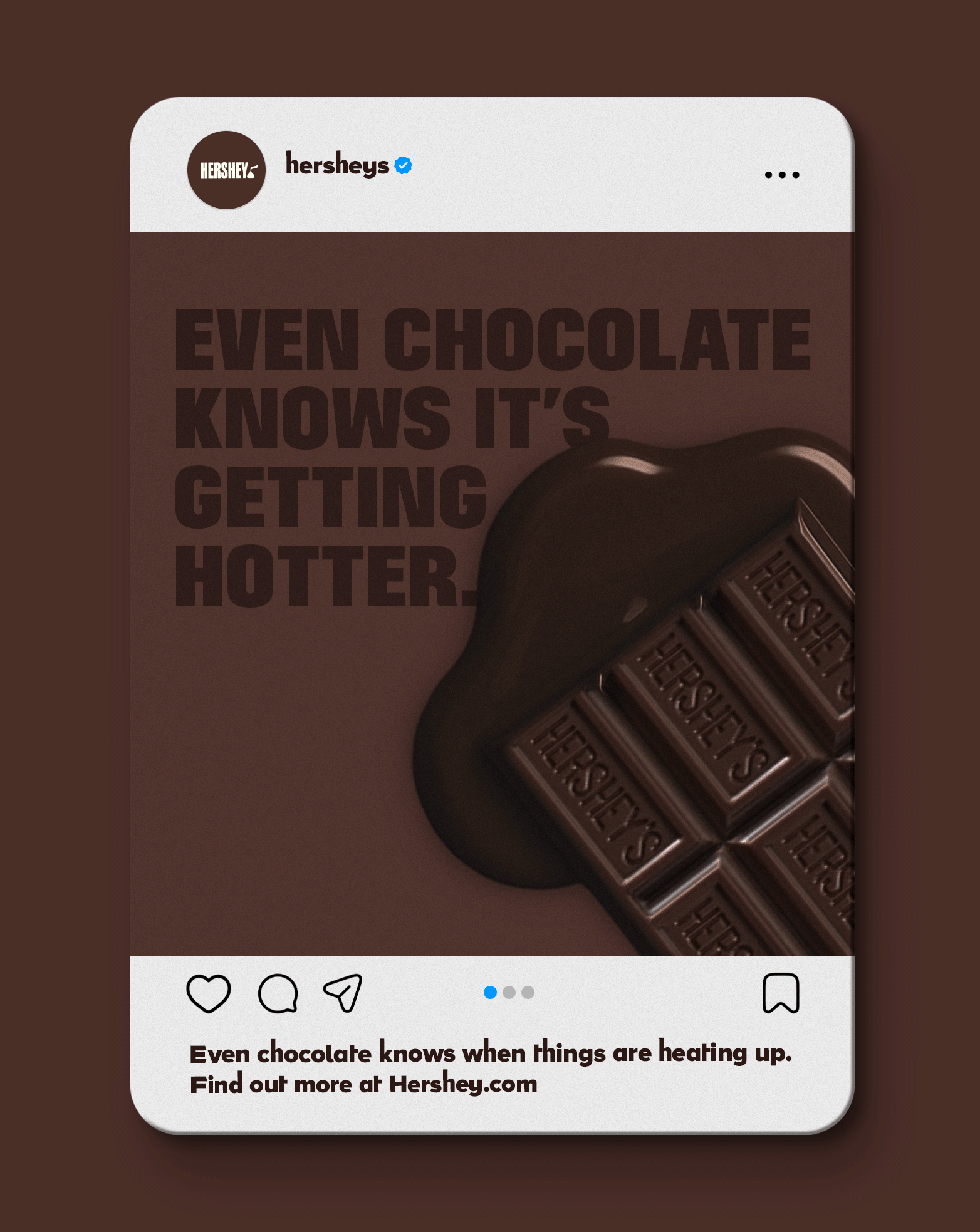 Concept Work: Proposed campaign platform built around a limited-edition insulated chocolate wrapper designed to “protect” Hershey’s bars while using the product as a cultural signal around rising global temperatures.
